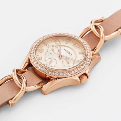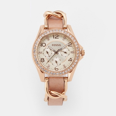 Rose gold watches for her and handsome Swiss watches for him retain all the qualities you love the most in a classic Fossil. Carlie Mini Three-Hand Black Leather Watch. Up to 3 cash back Womens Riley Rose Gold-Tone Chain and Bone Leather Strap Watch 38mm ES3466 Limited-Time Special 16000.